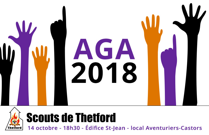 Les Scouts de Thetford invitent tous les membres adultes ainsi que tous les parents des membres jeunes à leur assemblée générale annuelle 2018. L’AGA est une bonne façon pour les parents de se tenir informé des activités générales de tout le mouvement scout à Thetford.