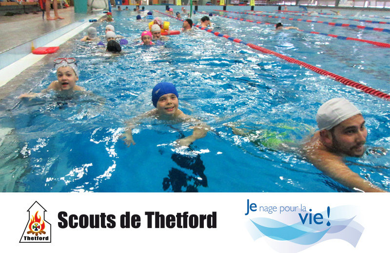 C'est avec fierté que les Scouts de Thetford ont participé une fois de plus au défi Je nage pour la vie! qui a eu lieu samedi le 8 avril 2017 à la piscine de la polyvalente de Thetford.